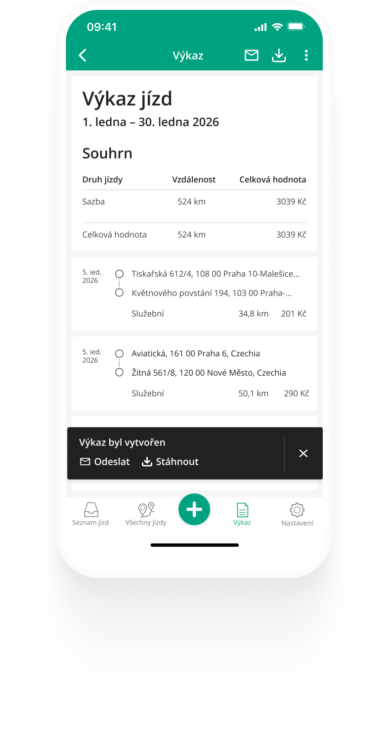 Jednoduché a automatizované vedení záznamů. Přesné výkazy o počtu najetých kilometrů v souladu s daňovými předpisy. Potřebujete pouze Váš telefon.
