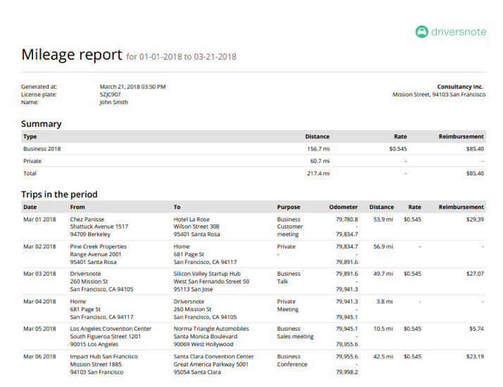 Vaše kniha jízd musí obsahovat obecné informace, týkající se Vašeho řízení řízení v průběhu roku, ale i podrobnosti o každé jízdě, kterou v daném roce podniknete. Patří sem celkový roční počet najetých kilometrů, datum, místo začátku a konce jízdy a účel jízdy (např. soukromá nebo služební). S aplikací Driversnote zaznamenáte všechny potřebné údaje automaticky.